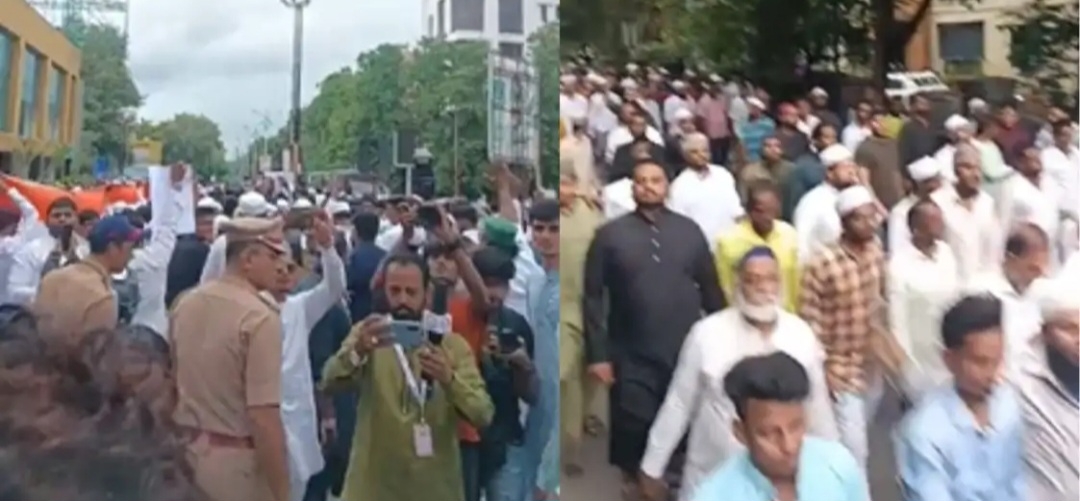 पुणे जिल्हाधिकारी कार्यालयासमोर "सर तन से जुदा" करणाऱ्या घोषणा दिल्याचा धक्कादायक प्रकार समोर आला आहे. जिल्हाधिकारी कार्यालयावर काढण्यात आलेल्या मोर्चामध्ये हा प्रकार घडला असून समाजामध्ये सार्वजनिक शांततेचा भंग होऊन असुरक्षितता व भितीचे वातावरण निर्माण केल्याप्रकरणी पुण्यात 300 जणांवर गुन्हा दाखल दाखल करण्यात आला आहे.