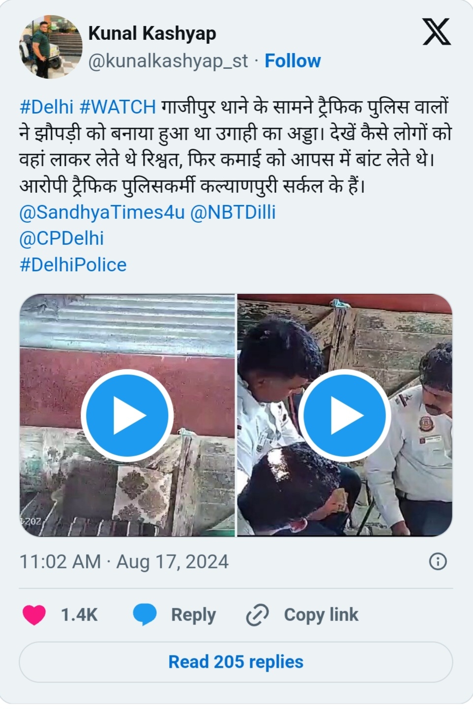 इतकेच नाही तर या व्हिडीओमध्ये हे तीन पोलिस त्यांची त्या दिवसाची काळी कमाई आपापसात वाटून घेताना दिसत आहेत. हे प्रकरण आहे दिल्लीतील गाजीपूर येथील एका पोलिस चौकीचे. शनिवारी ट्राफिक विभागात तैनात असलेल्या तीन पोलिस कर्मचाऱ्यांचा हा व्हिडीओ असून एक पोलिस कर्मचारी लाच घेताना कॅमेऱ्यात सापडला, इतकेच नाही तर नंतर त्याने हे पैसे इतर पोलिस कर्मचाऱ्यांसोबत वाटून घेतले. ही वाटणी करतानाचा देखील व्हिडीओ कॅमेऱ्यात कैद झाला आहे. हा व्हिडीओ व्हायरल झाल्यानंतर पोलिस विभागात एकच खळबळ उडाल्याचे पाहायला मिळाले.